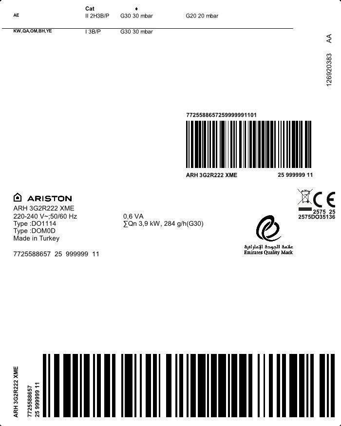 ARH 3G2R222 XME: غاز مُدمَج (غاز, 30 سم)