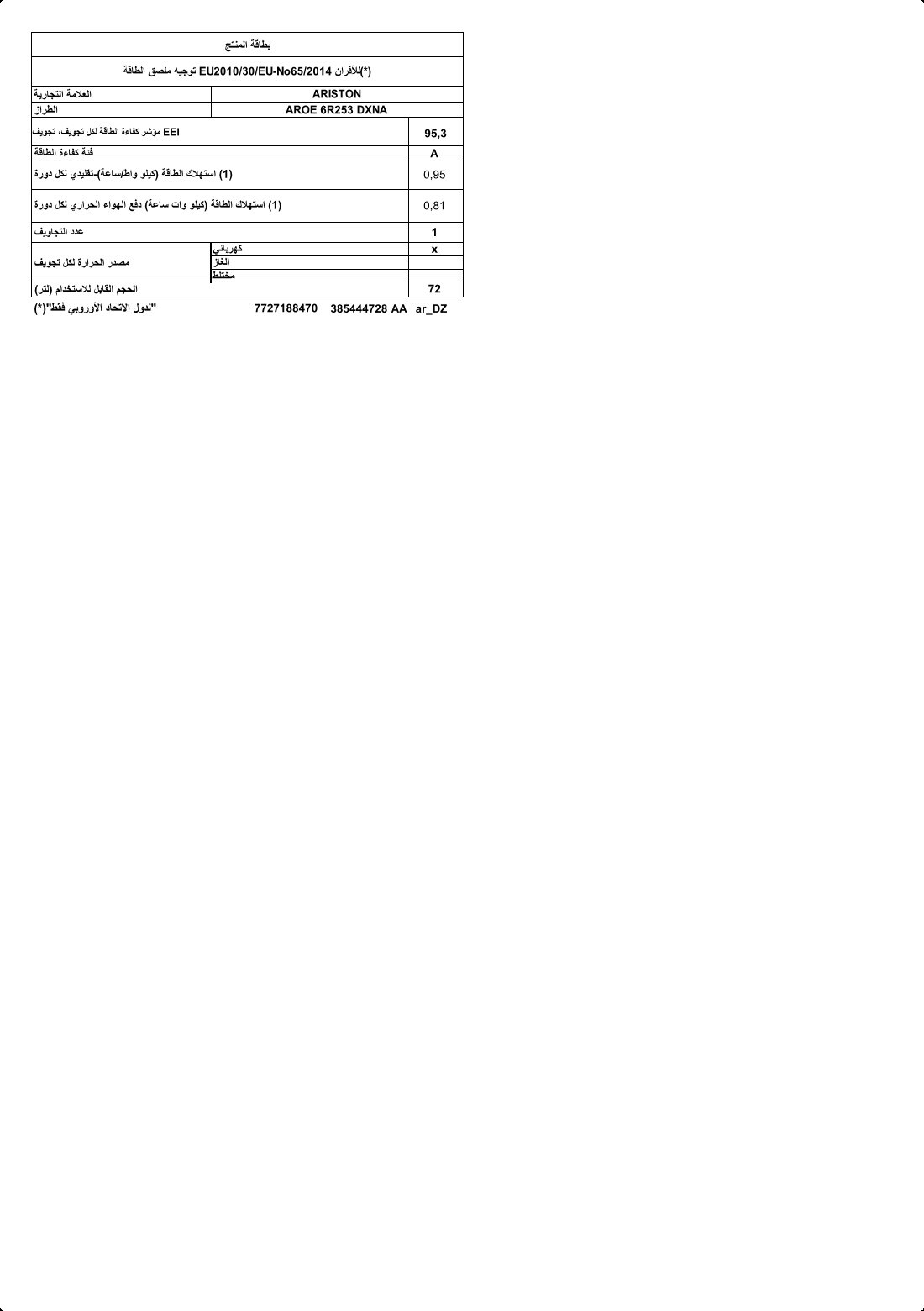 AROE 6R253 DXNA: فرن مدمج (60 سم, 72 لتر)