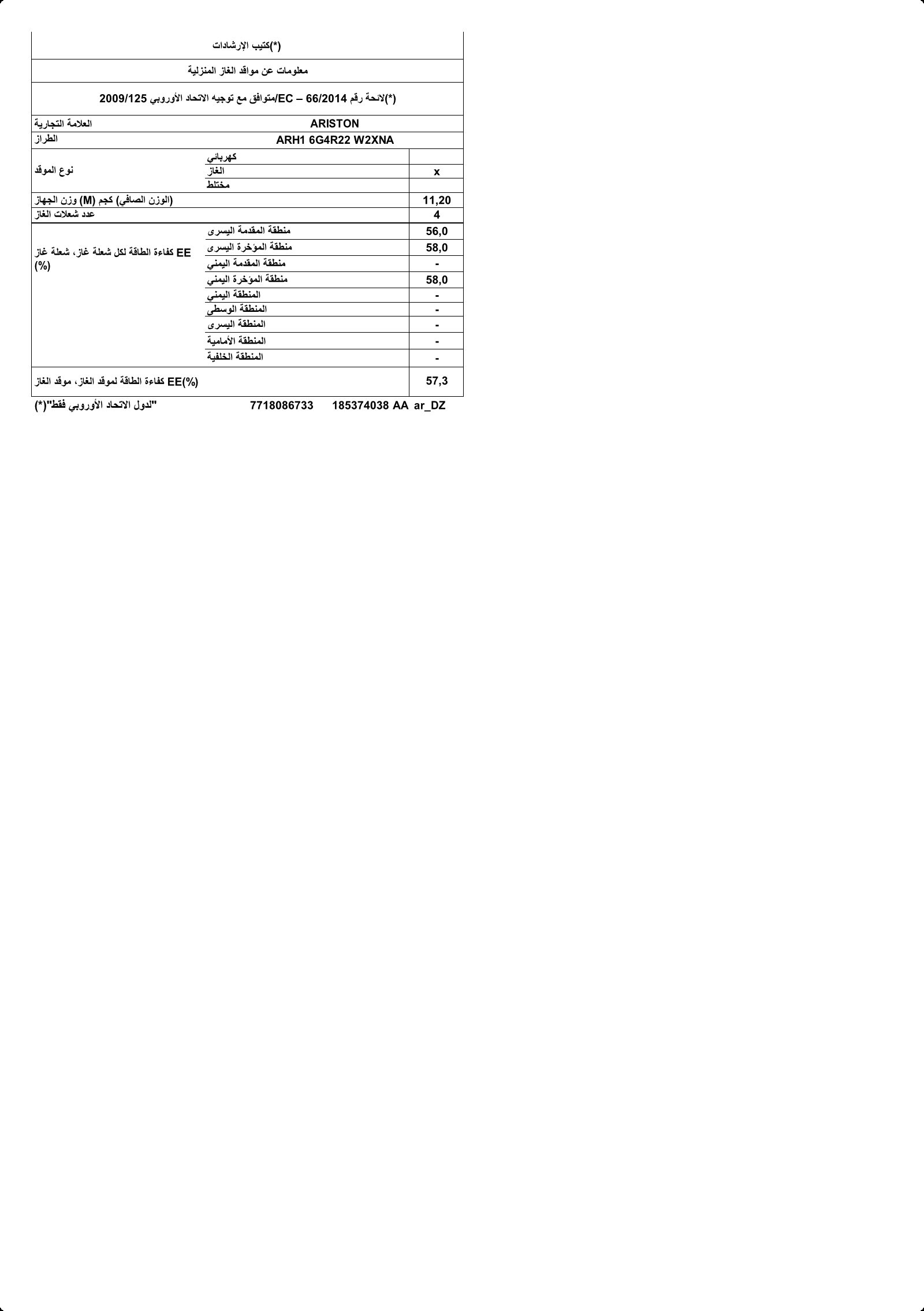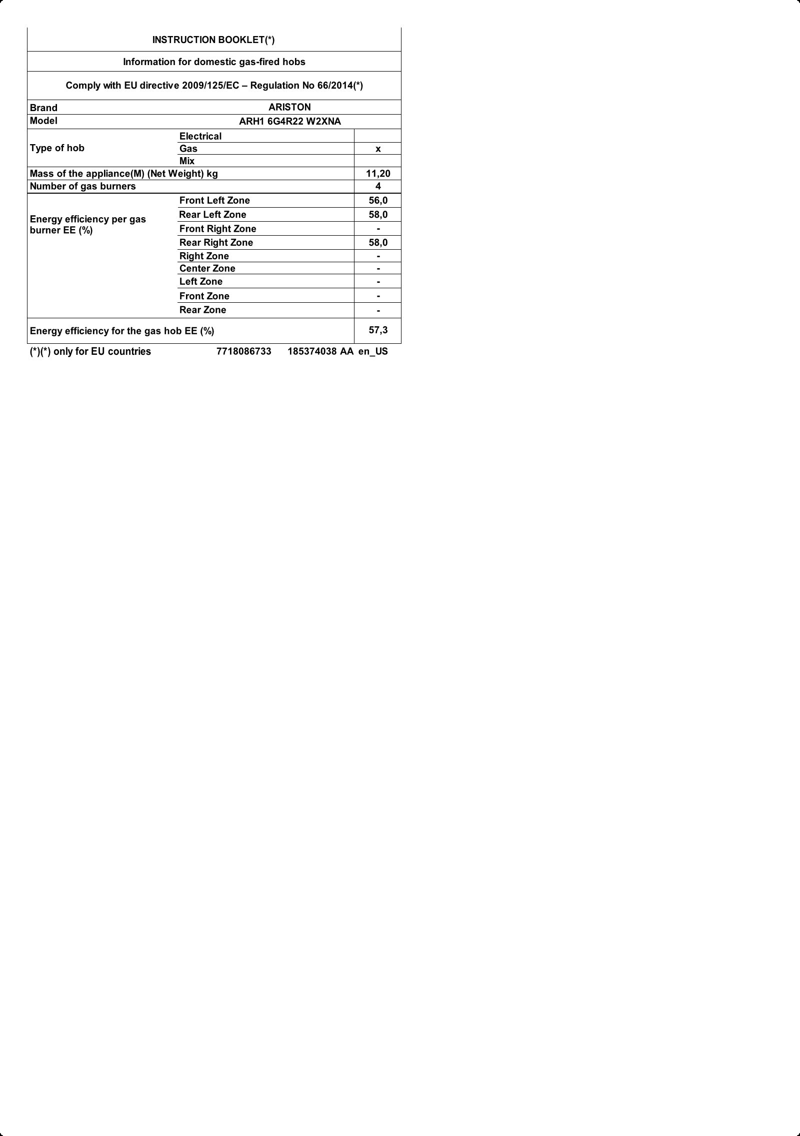ARH1 6G4R22 W2XNA: غاز مُدمَج (غاز, 60 سم)