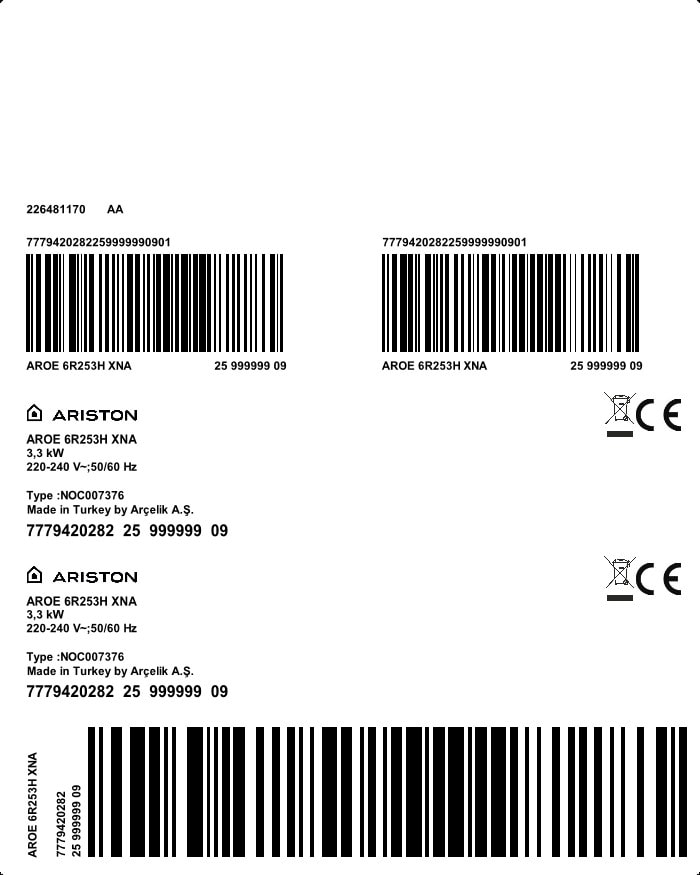 AROE 6R253H XNA: فرن مدمج (60 سم, 72 لتر)