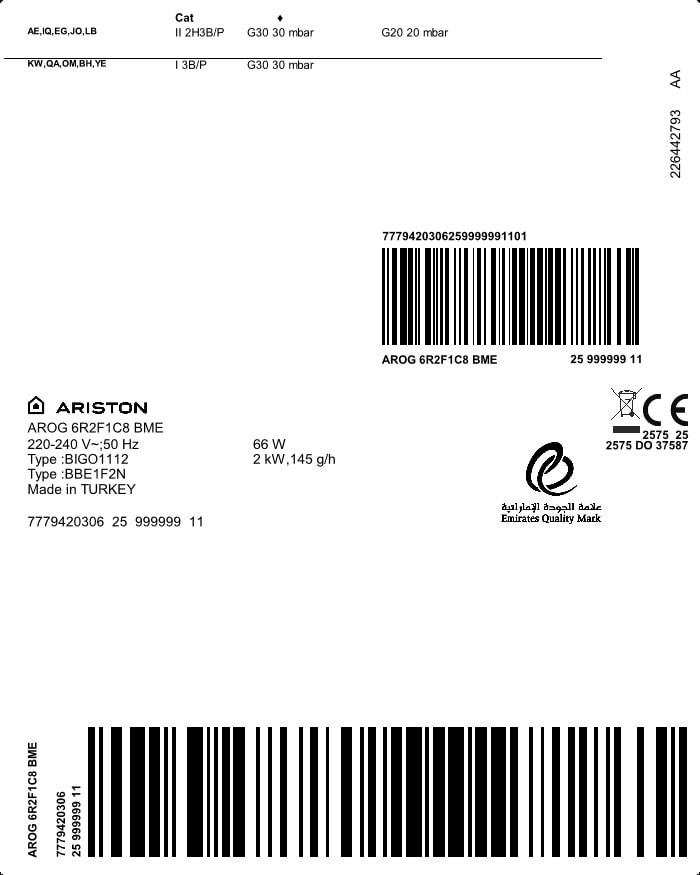 AROG 6R2F1C8 BME: فرن مُدمَج (60 سم, 66 لتر)